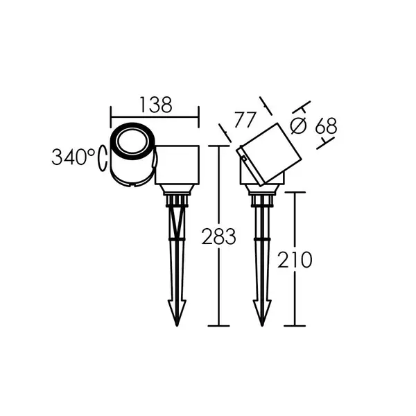 Corps aluminium noir, orientable, montage sur mur, sol ou piquet.